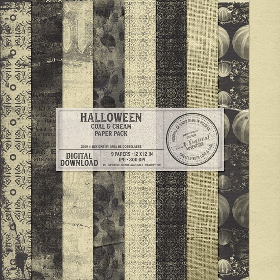 Halloween Pumpkin Pattern Paper Ornamental Pattern Grungy Paper Pack Gray And Cream Color Scheme Instant Download Grunge Roses Burlap