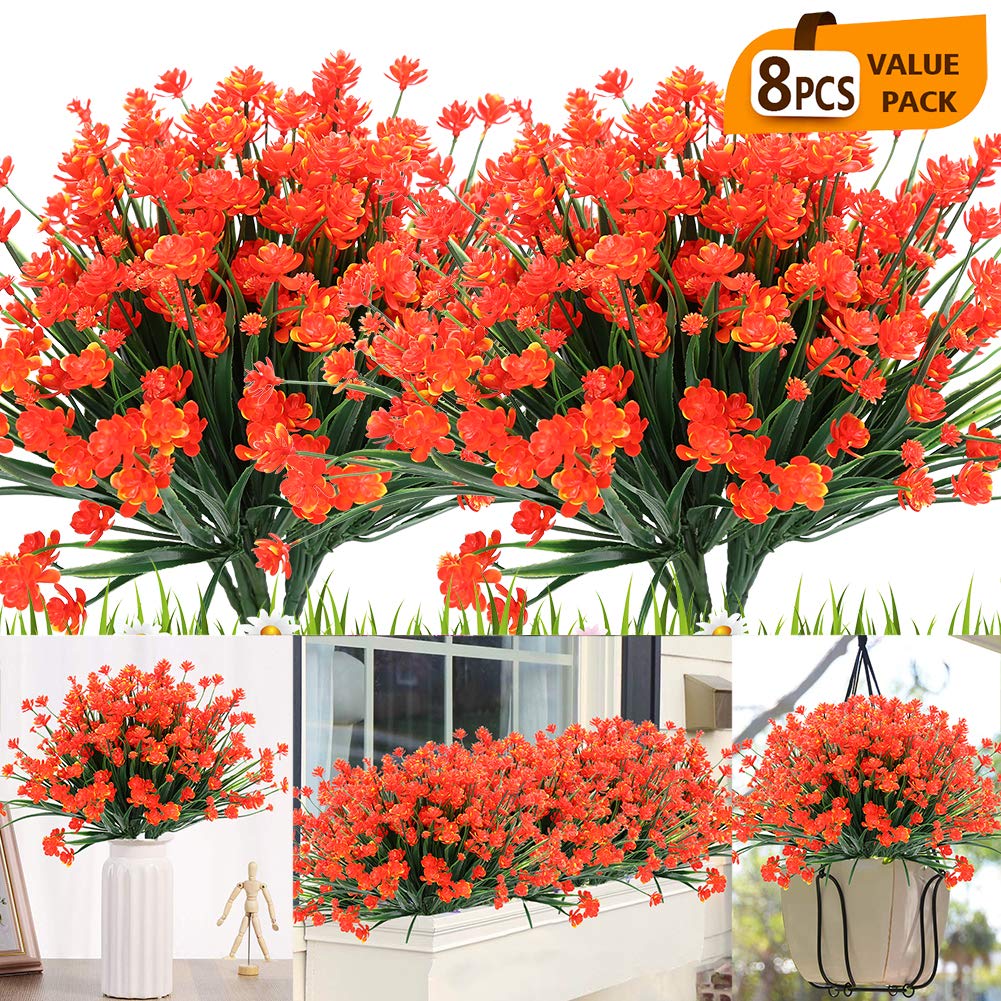 Klemoo Artificial Flowers 8 Bundles Fake Outdoor Uv Resistant Greenery Faux Plants Shrubs For Indoor Outside Hanging Planter Home Office Wedding